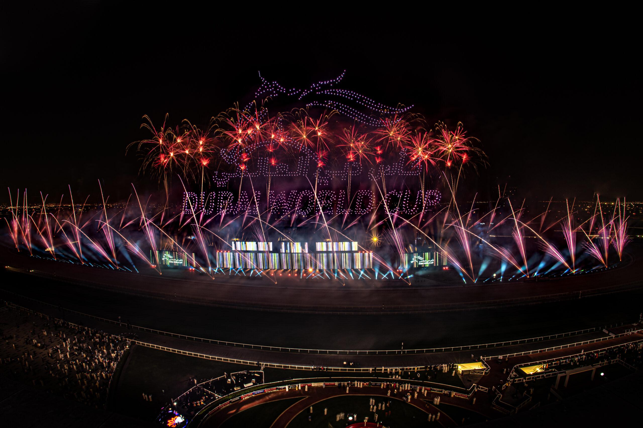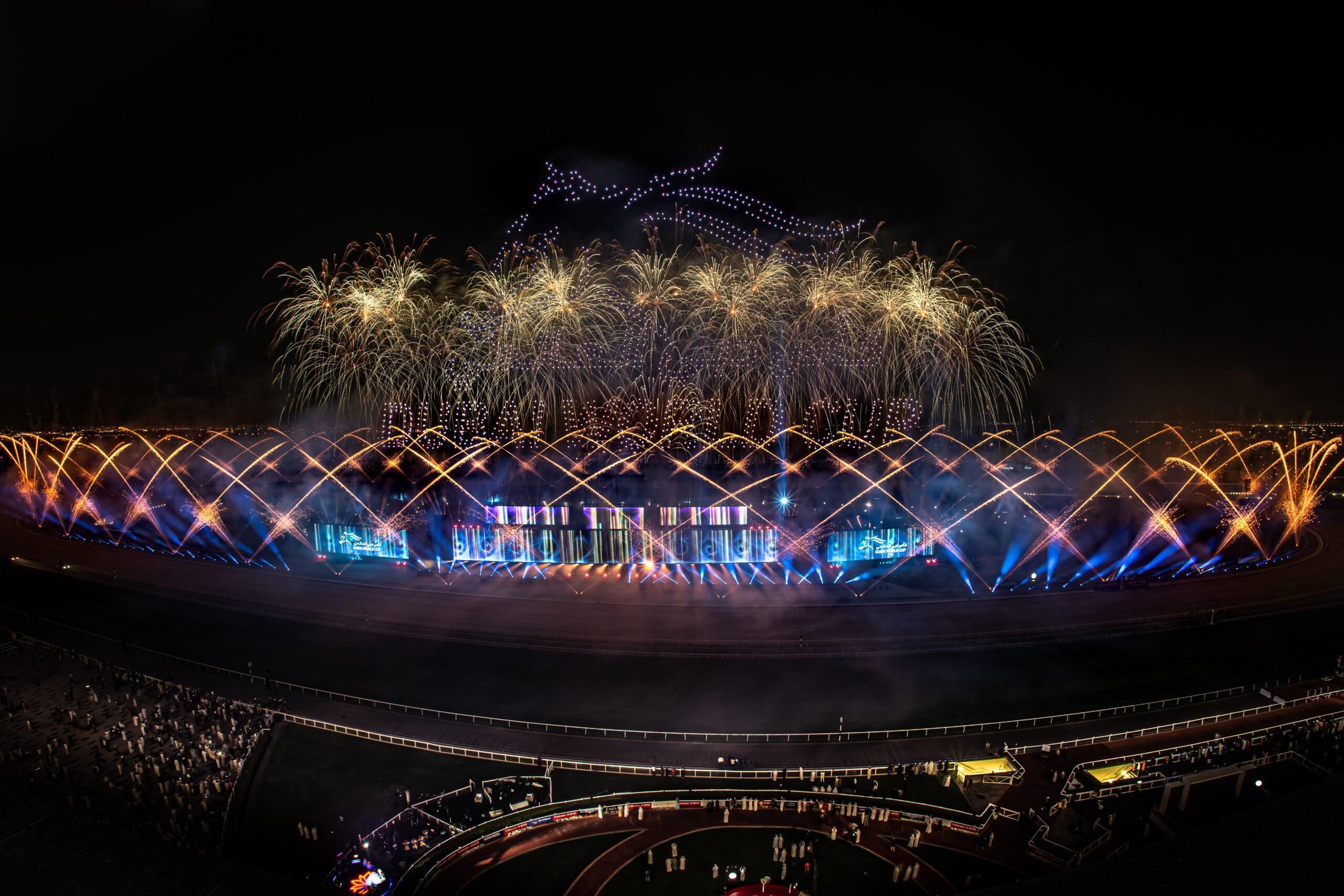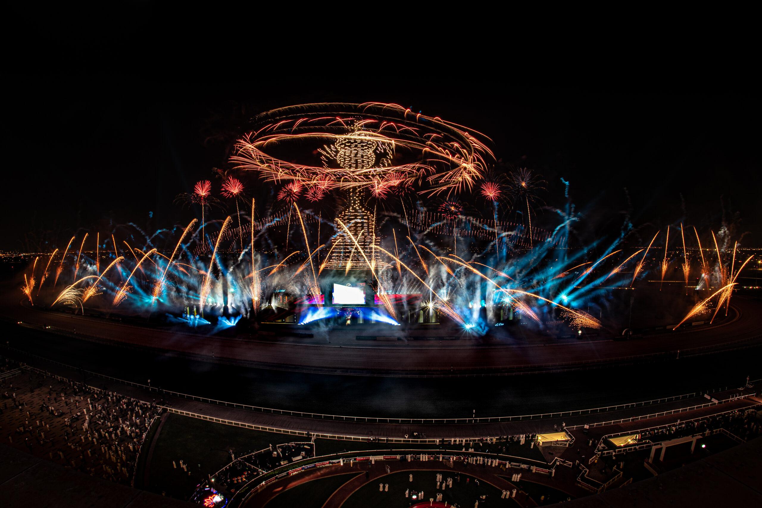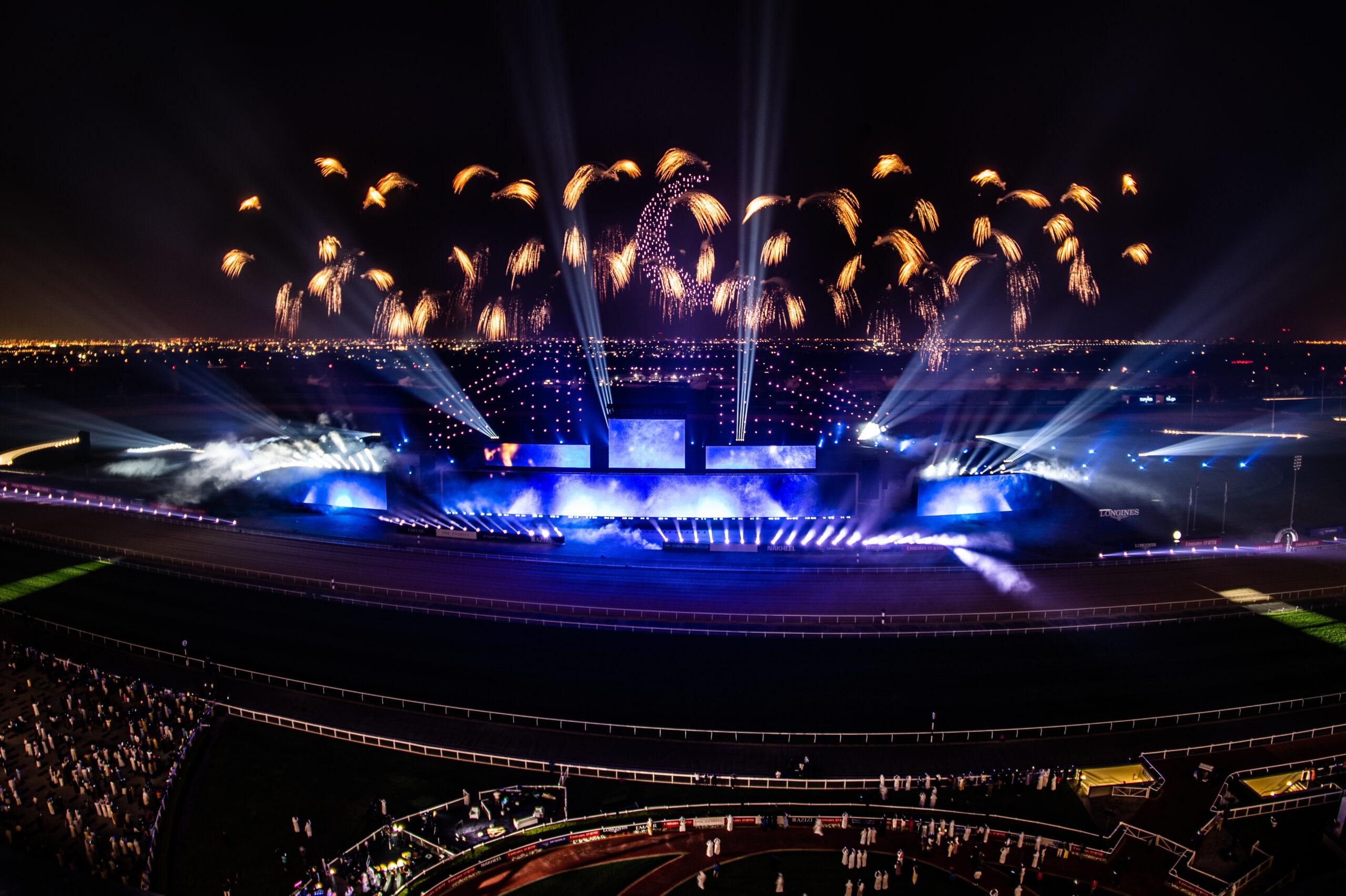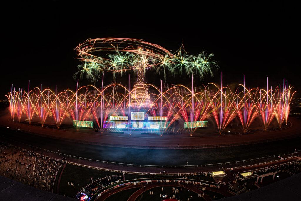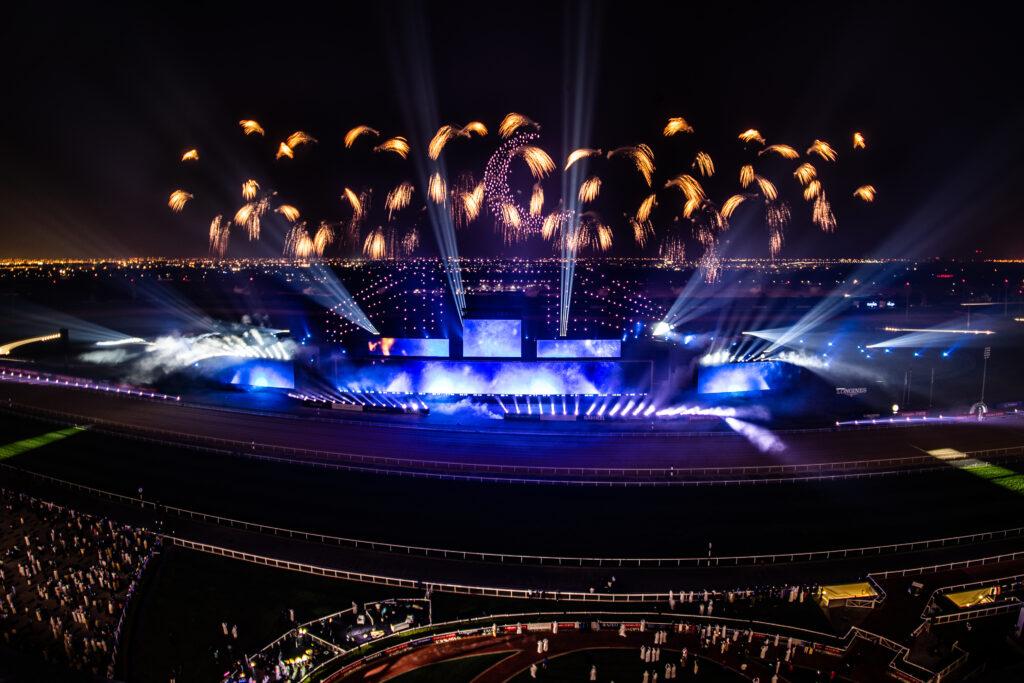 The gleaming annual spectacle and a highlight of Dubai’s social calendar and the equestrian world returned in it’s usual opulence on March 25th, 2023. Flash Art were delighted to be invited for the second year running to accentuate the Dubai World Cup Closing Ceremony after the thrilling final race and trophy presentation.