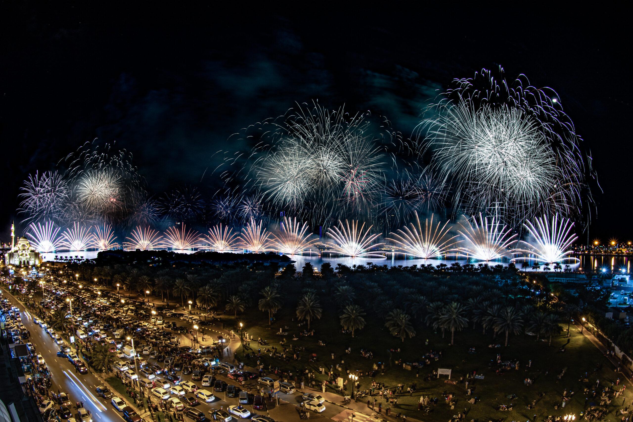 Sharjah celebrated New Year’s Eve on the grandest scale this year – Flash Art filled the skies above Khalid Lake with fireworks stretching nearly 2 Km.