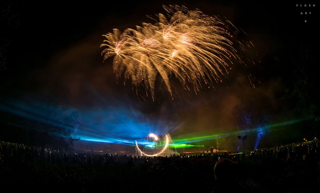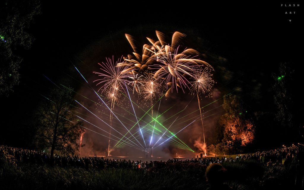 Auf dem ehemaligen Landesgartenschaugelände in den Emsauen findet jedes Jahr das Festival „Feuer und Flamme“ statt. Das diesjährige Motto lautete „Big Bang – eine Reise durch das Universum“ und das haben wir natürlich sowohl musikalisch als auch in der Auswahl der Effekte aufgegriffen. Die Gäste erlebten hautnah einen Flug durch ferne Galaxien mit schillernden Farben aus Laserbeams und Pyroeffekten. Auf einer Breite von rund 250m haben wir Feuerwerk und Laser inszeniert. Willkommen im Weltall!