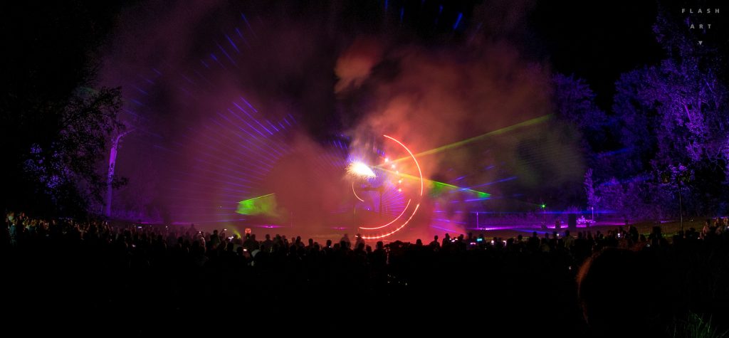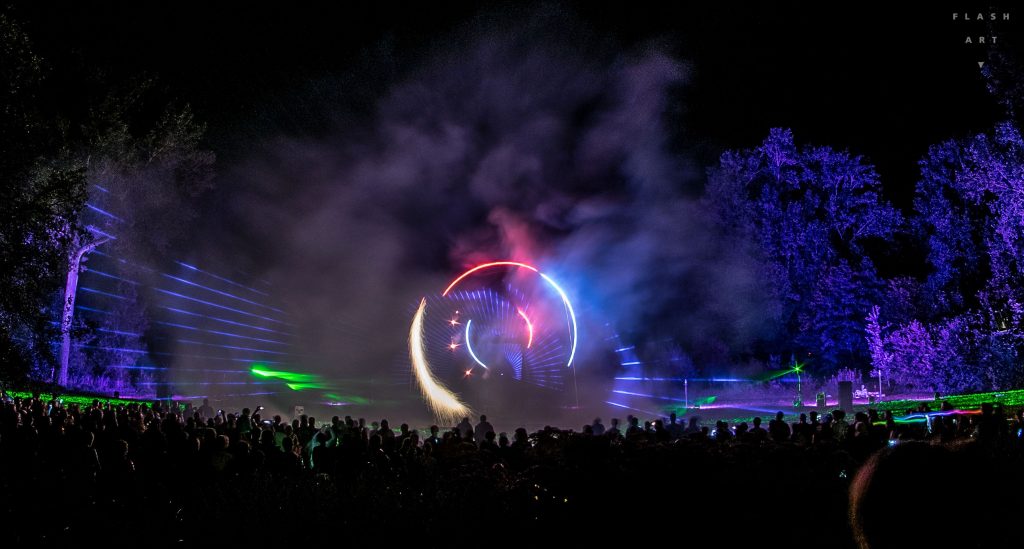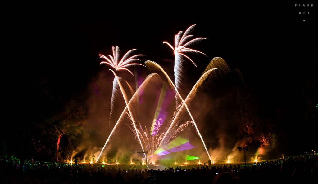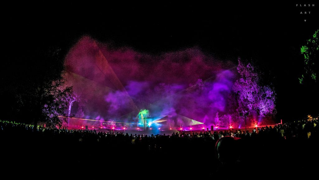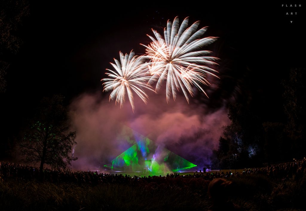 Auf dem ehemaligen Landesgartenschaugelände in den Emsauen findet jedes Jahr das Festival „Feuer und Flamme“ statt. Das diesjährige Motto lautete „Big Bang – eine Reise durch das Universum“ und das haben wir natürlich sowohl musikalisch als auch in der Auswahl der Effekte aufgegriffen. Die Gäste erlebten hautnah einen Flug durch ferne Galaxien mit schillernden Farben aus Laserbeams und Pyroeffekten. Auf einer Breite von rund 250m haben wir Feuerwerk und Laser inszeniert. Willkommen im Weltall!