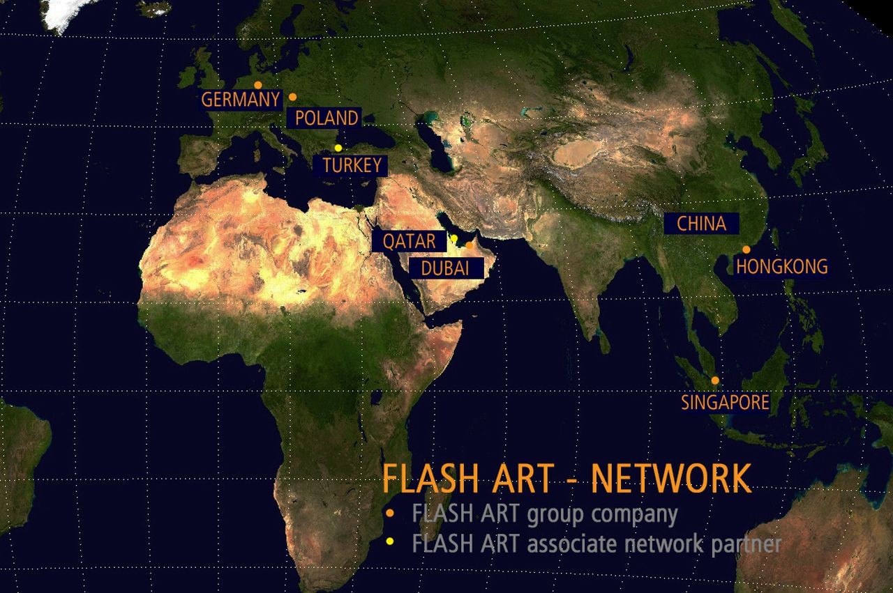 FLASH ART hat fast überall auf der Welt Niederlassungen, Partner und Freunde. So können wir mit Ihnen in Deutschland ein Konzept erarbeiten, es aber in Moskau, Dubai oder Singapur umsetzen.